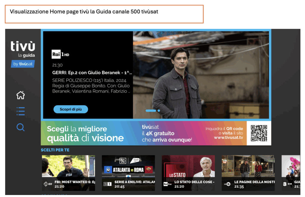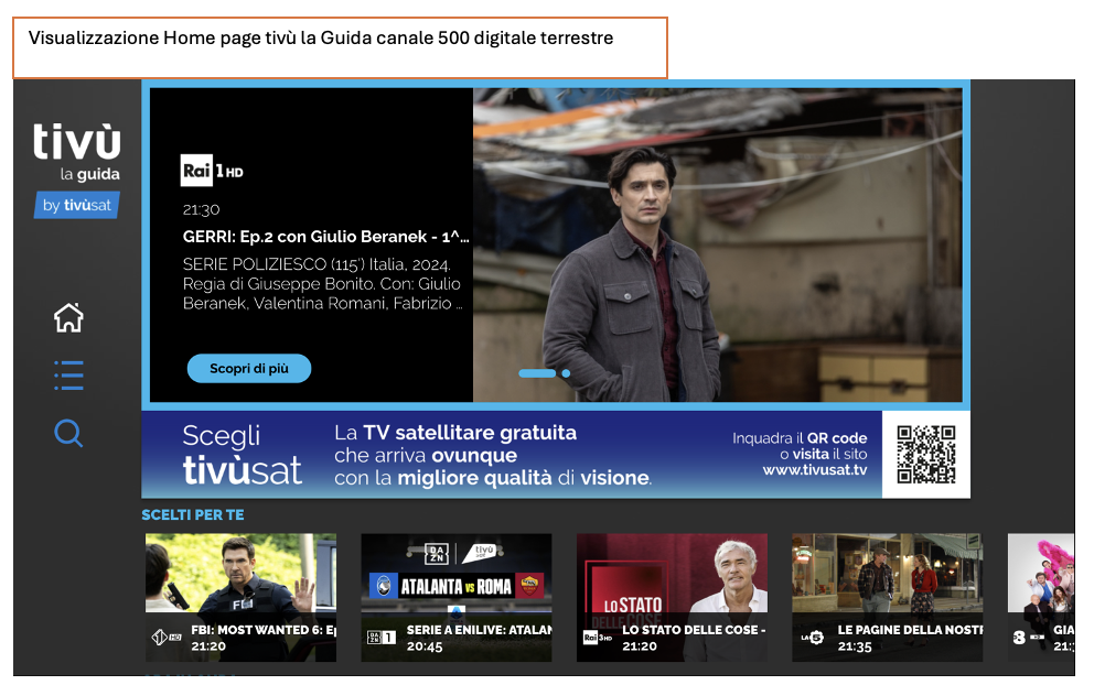 È disponibile al canale 500 di Tivùsat e del digitale terrestre “Tivù la Guida”, la nuova applicazione interattiva che rivoluziona il modo in cui gli utenti accedono alle informazioni sulla programmazione televisiva. Pensata per un’esperienza di navigazione semplice, veloce e intuitiva, l’applicazione permette di consultare l’intera settimana dei canali televisivi, con i contenuti costantemente aggiornati.